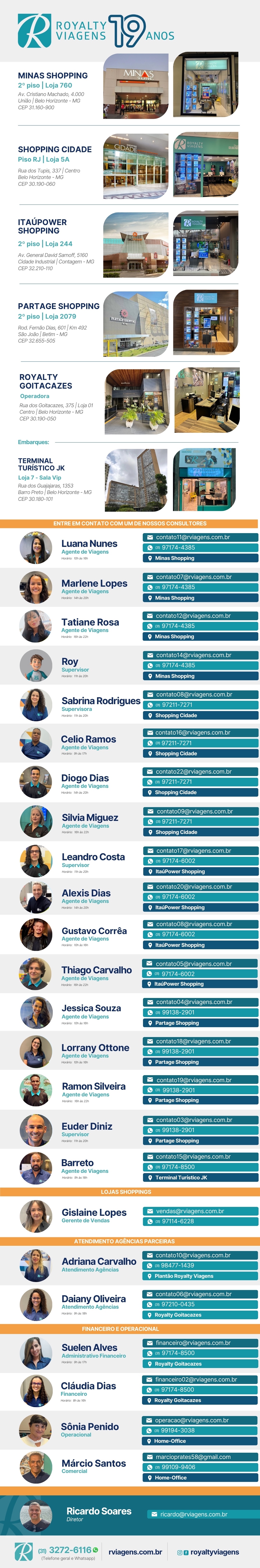 A Royalty Viagens surgiu a partir de um grande sonho: criar uma empresa capaz de prestar consultoria em viagens de lazer a partir da experiência de seu fundador que dedicou anos de sua vida ao trabalho árduo como guia de turismo, acompanhando grupos em viagens por este nosso maravilhoso pais.